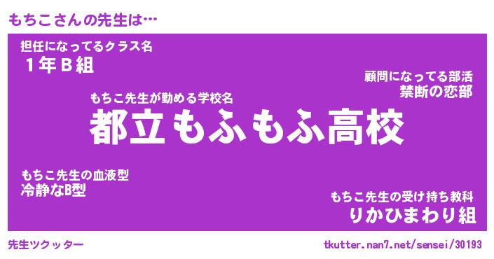 | ファンタジー風あだ名 | 『モチフェル』『エターナルモチコー』 |