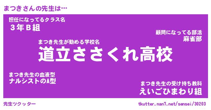 | ヒーロー風カッコイイあだ名 | 『スーパーマツキ』『ウルトラまつきマン』 |