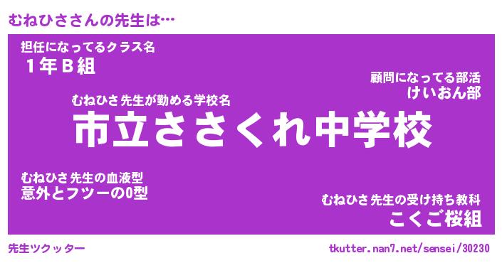 | ヘコむあだ名 | 『むねもー』『つくし』『むねお』 |