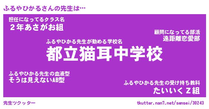 | ヒーロー風カッコイイあだ名 | 『スーパーフルヤヒカル』『魔戒騎士フル』 |