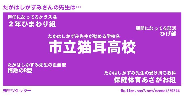 | ヘコむあだ名 | 『たかにー』『豆乳』『たかっぺ』 |