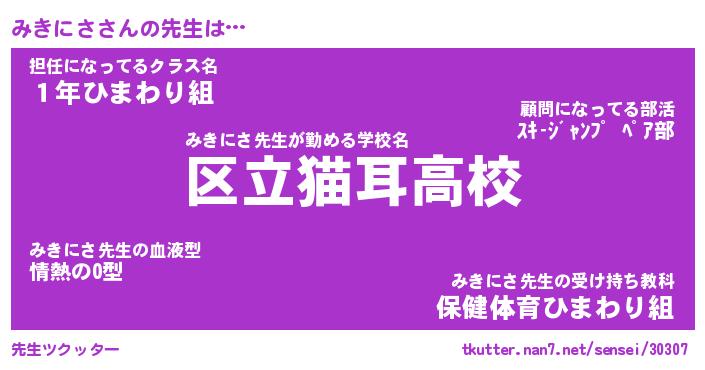 | 意味不明あだ名 | 『ペロリンみきにさ』『永久保存みきにさ』 |
