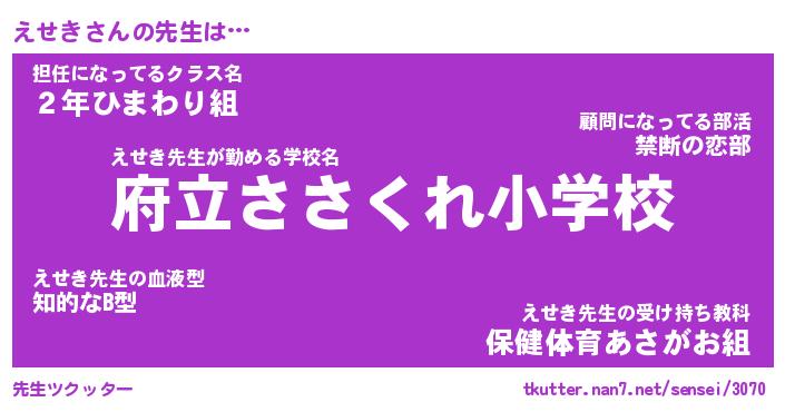 | ヒーロー風カッコイイあだ名 | 『スーパーエセキ』『ウルトラえせきマン』 |