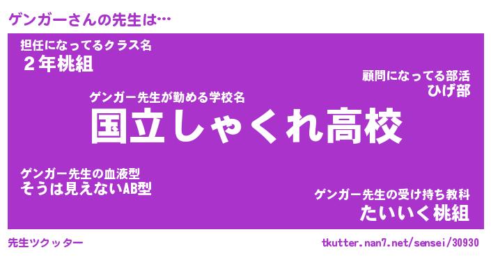 | ファンタジー風あだ名 | 『ゲンフェル』『エターナルゲンガーー』 |
