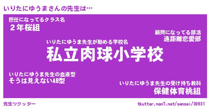 | 男性向けラノベタイトル風あだ名 | 『いりたにゆうまの憂鬱』 |