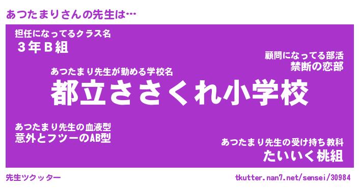 | ポケモン風あだ名 | 『アツチュウ』『アツタダネ』 |