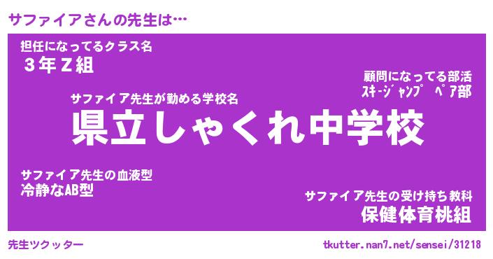 | ファンタジー風あだ名 | 『サフフェル』『エターナルサファイアー』 |