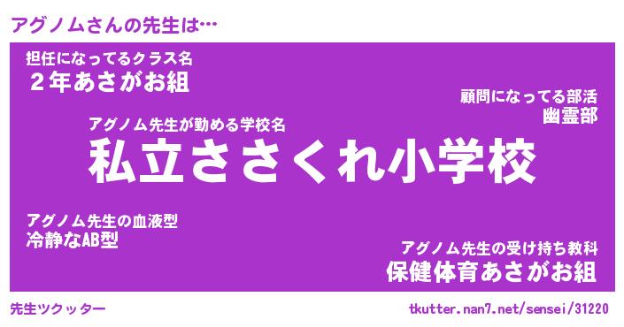 | 意味不明あだ名 | 『ペロリンアグノム』『永久保存アグノム』 |