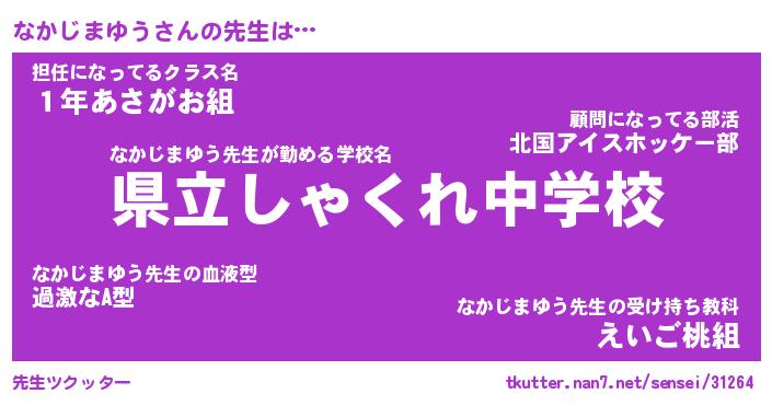 | ヒーロー風カッコイイあだ名 | 『スーパーナカジマユウ』『銀牙騎士ナカ』 |