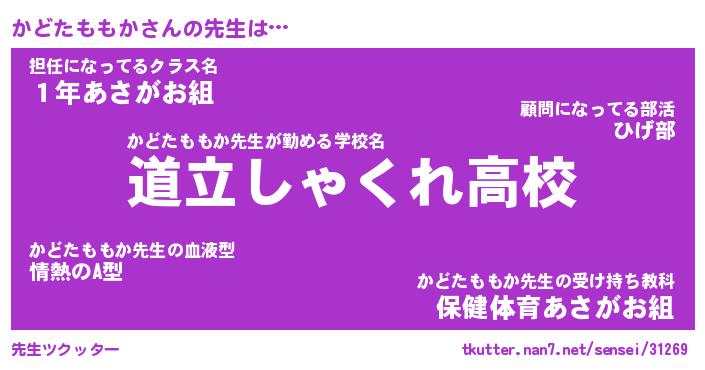 | 伝説のあだ名 | 『不死鳥のスナイパーかどたももか』 |
