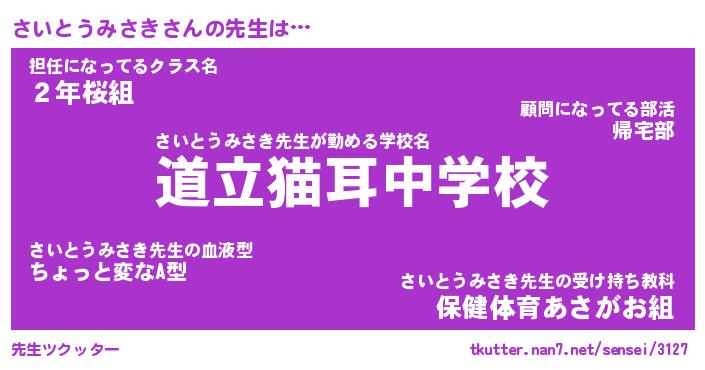 | 恥ずかしいあだ名 | 『プリティーさいとうみさき』『さいちん』 |
