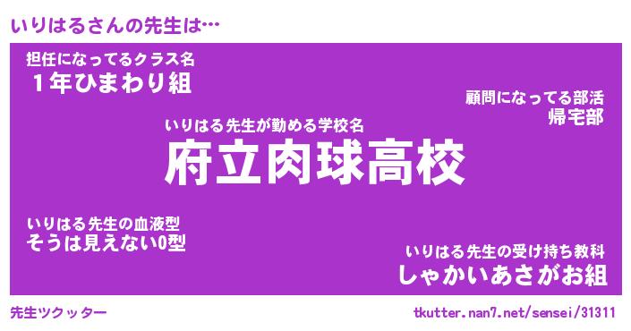 | 意味不明あだ名 | 『ペロリンいりはる』『永久保存いりはる』 |