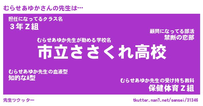 | 伝説のあだ名 | 『伝説のスナイパーむらせあゆか』 |