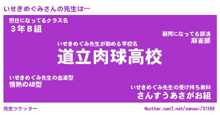 | ヘコむあだ名 | 『いせふぇ~』『なまこ酢』『いせを』 |