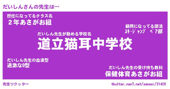 | 意味不明あだ名 | 『ペロリンだいしん』『永久保存だいしん』 |