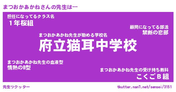 | ヘコむあだ名 | 『まつにー』『つくし』『まつお』 |
