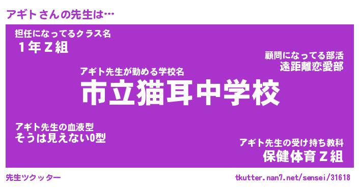 | 意味不明あだ名 | 『ペロリンアギト』『アギトフォーエバー』 |