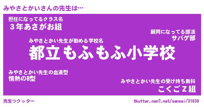 | ヒーロー風カッコイイあだ名 | 『スーパーミヤサトカイ』『黄金騎士ミヤ』 |
