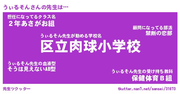 | ヒーロー風カッコイイあだ名 | 『スーパーウィルソン』『天弓騎士ウィ』 |