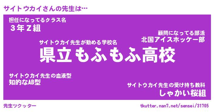 | ヒーロー風カッコイイあだ名 | 『スーパーサイトウカイ』『暗黒騎士サイ』 |