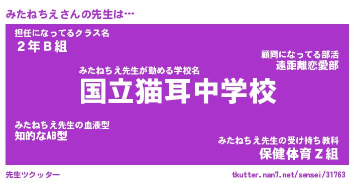 | 欧米人風あだ名 | 『マイケルみたねちえ』 |