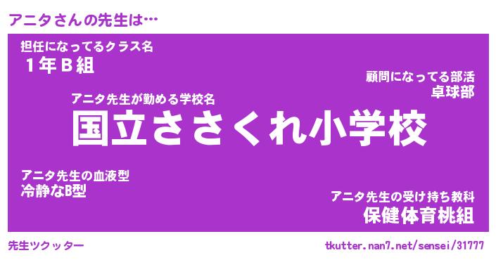 | ポケモン風あだ名 | 『アニチュウ』『アニタダネ』 |