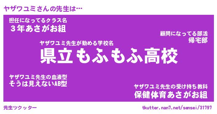 | ファンタジー風あだ名 | 『ヤザフェル』『エターナルヤザワユミー』 |