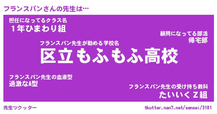| ヒーロー風カッコイイあだ名 | 『スーパーフランスパン』『銀牙騎士フラ』 |