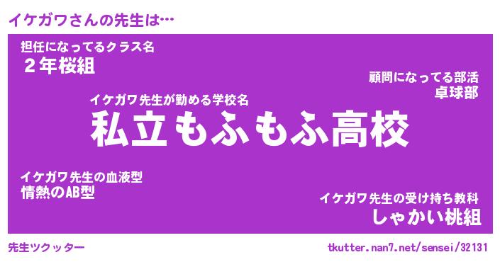 | 意味不明あだ名 | 『ペロリンイケガワ』『永久保存イケガワ』 |