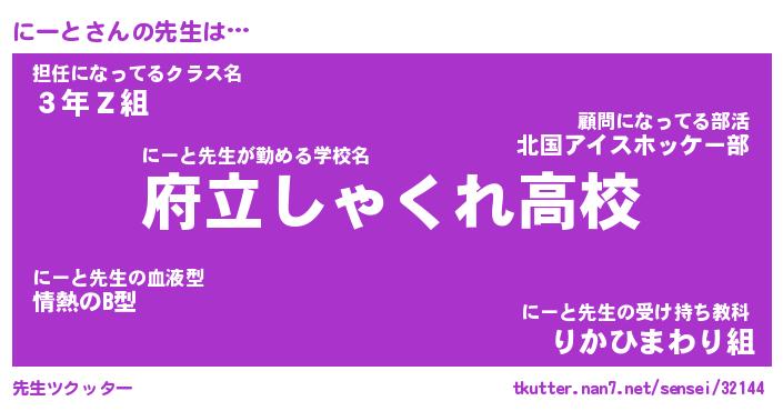 | ポケモン風あだ名 | 『ニーチュウ』『ニートダネ』 |