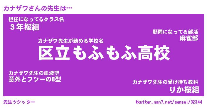 | ファンタジー風あだ名 | 『カナフェル』『エターナルカナザワー』 |