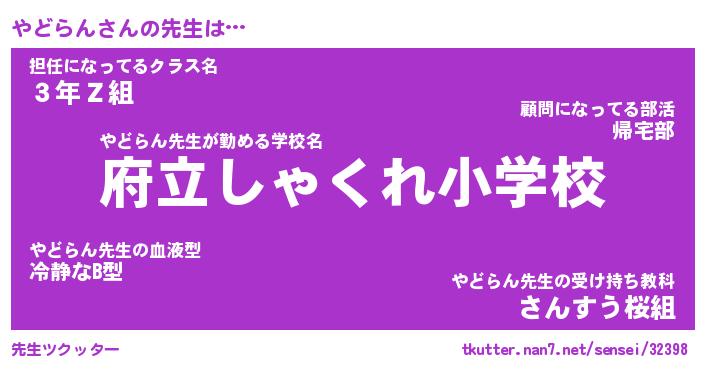 | 欧米人風あだ名 | 『マイケルやどらん』『ウサインやどらん』 |