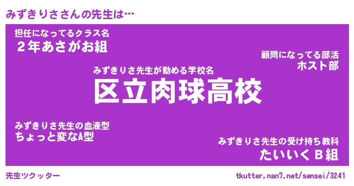 | ファンタジー風あだ名 | 『ミズフェル』『エターナルミズキリサー』 |