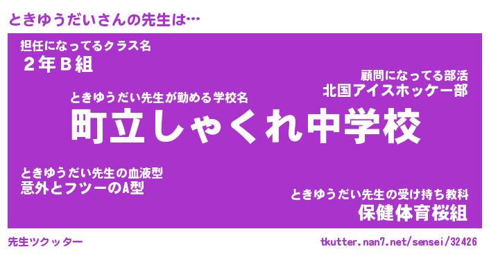 | 恥ずかしいあだ名 | 『プリティーときゆうだい』『ときっちょ』 |