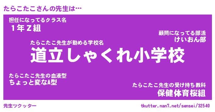 | ヒーロー風カッコイイあだ名 | 『スーパータラコタコ』『黄金騎士タラ』 |
