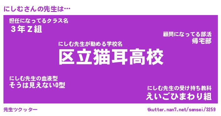 | ファンタジー風あだ名 | 『ニシフェル』『エターナルニシムー』 |