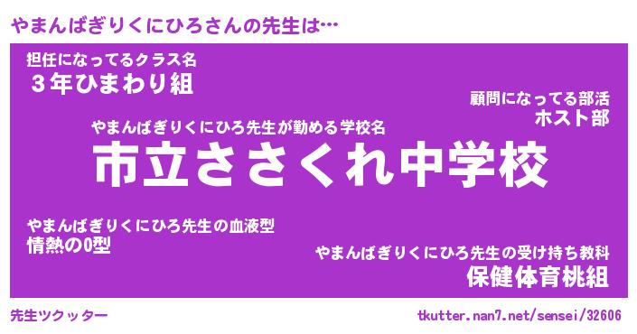 | 男性向けラノベタイトル風あだ名 | 『やまんばぎりくにひろの憂鬱』 |