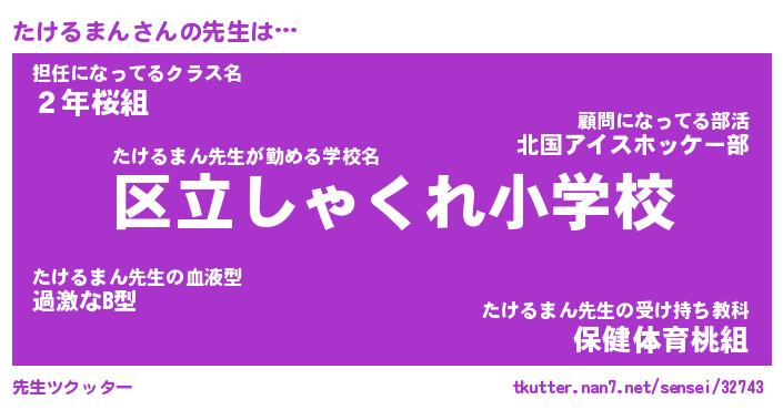 | ファンタジー風あだ名 | 『タケフェル』『エターナルタケルマンー』 |