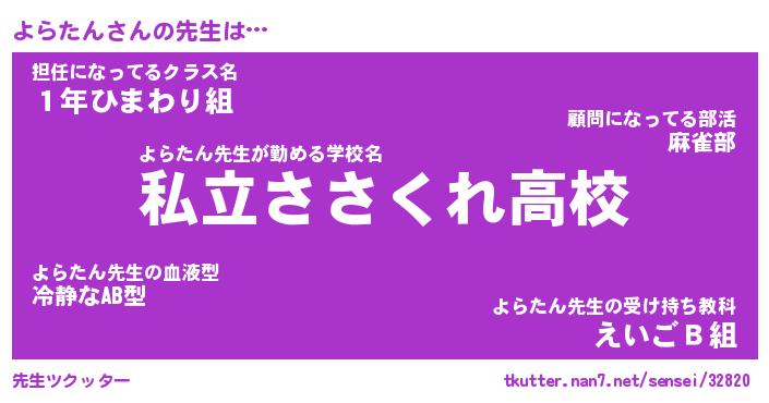 | 意味不明あだ名 | 『ペロリンよらたん』『永久保存よらたん』 |