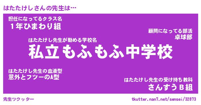 | ヒーロー風カッコイイあだ名 | 『スーパーハタタケシ』『銀牙騎士ハタ』 |