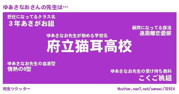 | ポケモン風あだ名 | 『ユアチュウ』『ユアサダネ』 |