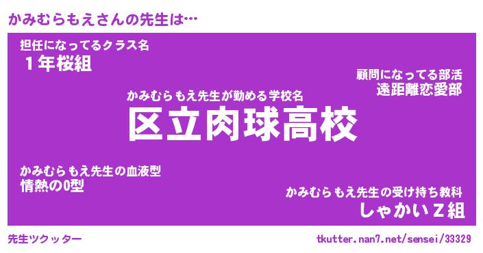 | 意味不明あだ名 | 『ペロリンかみむらもえ』 |