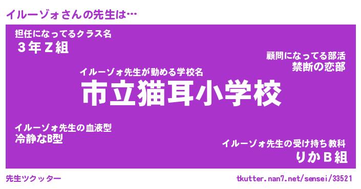 | 2回繰り返すあだ名 | 『イルイル』『イイルル』『ぬらぬら』 |