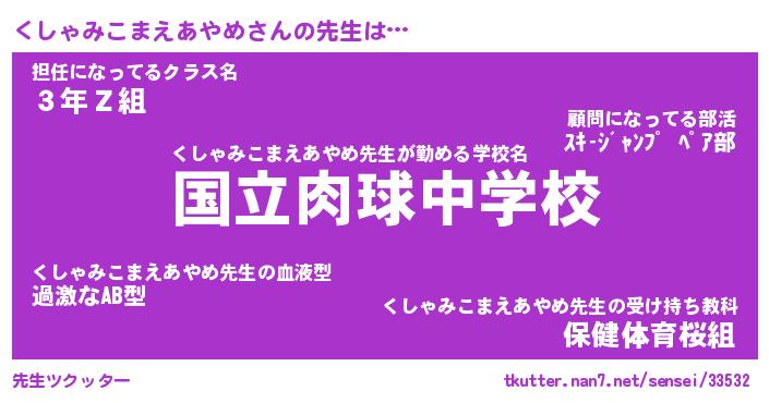 | ヘコむあだ名 | 『くしふぇ~』『酢こんぶ』 |