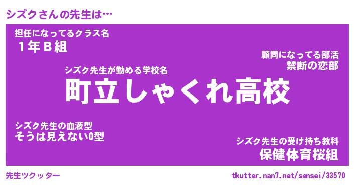 | ポケモン風あだ名 | 『シズチュウ』『シズクダネ』 |