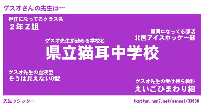 | ヘコむあだ名 | 『ゲスにー』『なまこ酢』『ゲス太郎』 |