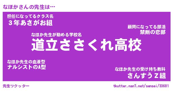 | ポケモン風あだ名 | 『ナホチュウ』『ナホカダネ』 |