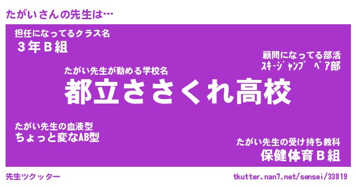 | ヘコむあだ名 | 『たがもー』『つくし』『たがっぺ』 |