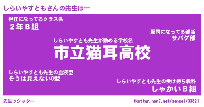 | ヘコむあだ名 | 『しらにー』『豆乳』『しら太郎』 |