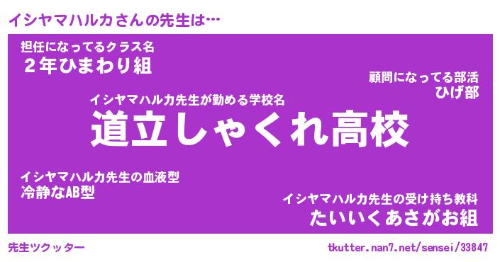| 胡散臭い通販商品みたいなあだ名 | 『モテモテ間違いなし霊験あらたかなお札…その名も「イシヤマハルカ」』 |